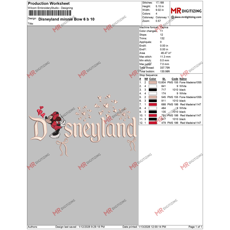 Thank you for choosing our Disneyland Minnie Bow Valentine s Day Embroidery design!