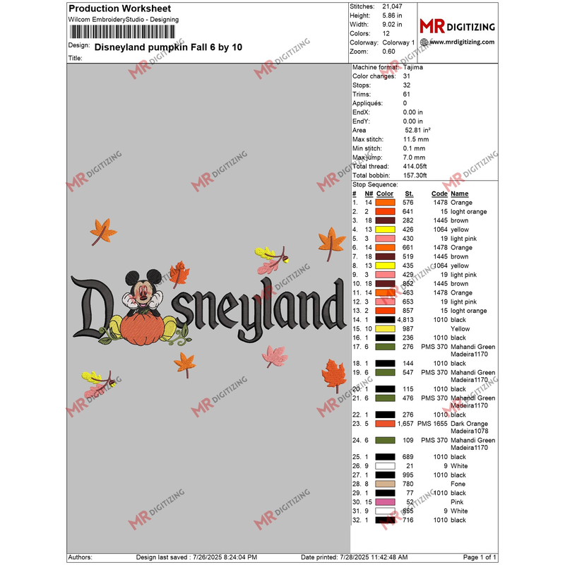 Thank you for choosing our Disneyland pumpkin Fall Halloween Embroidery design!