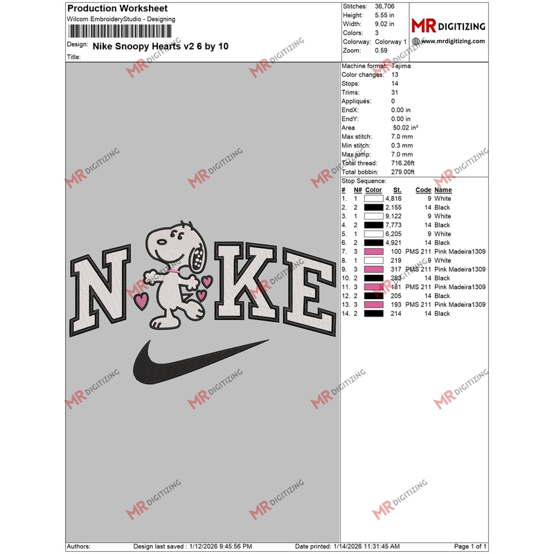 Thank you for choosing our Nike Snoopy Hearts v2 Valentine’s Day Embroidery design!