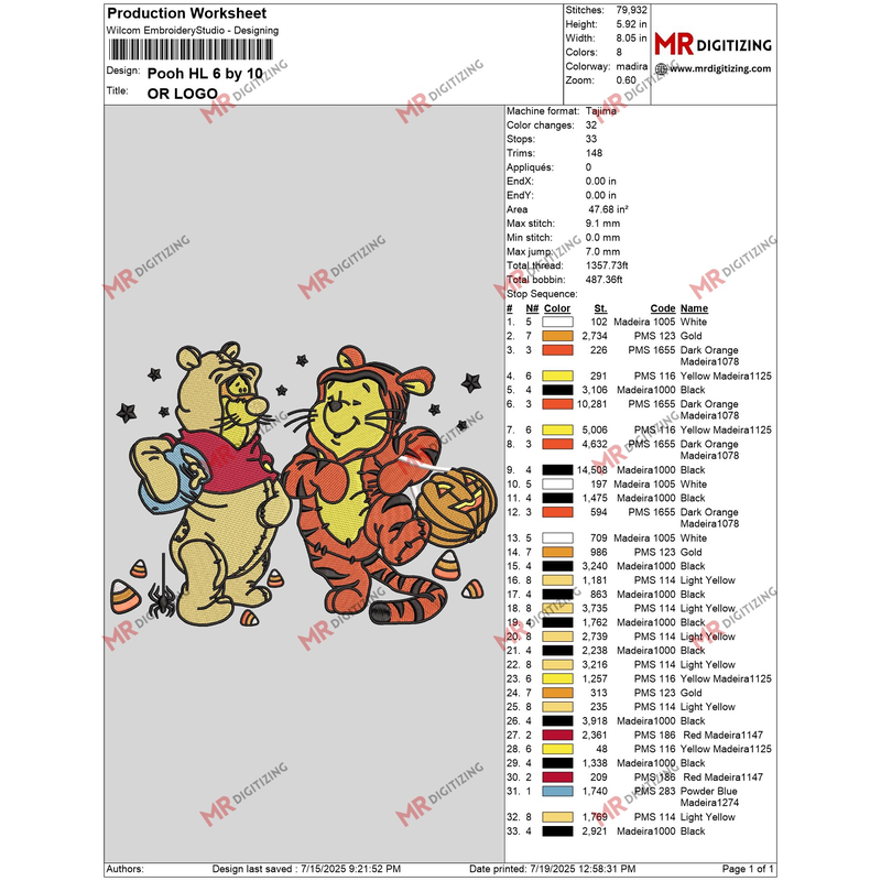 Thank you for choosing our Pooh HL Halloween Embroidery design!