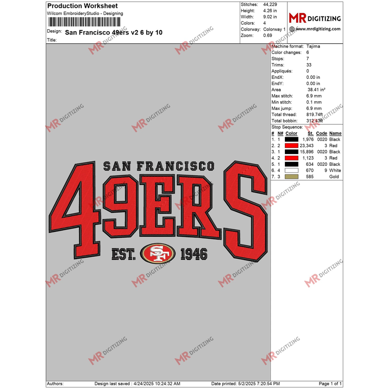 Thank you for choosing our San Francisco 49ers v2 Embroidery design!