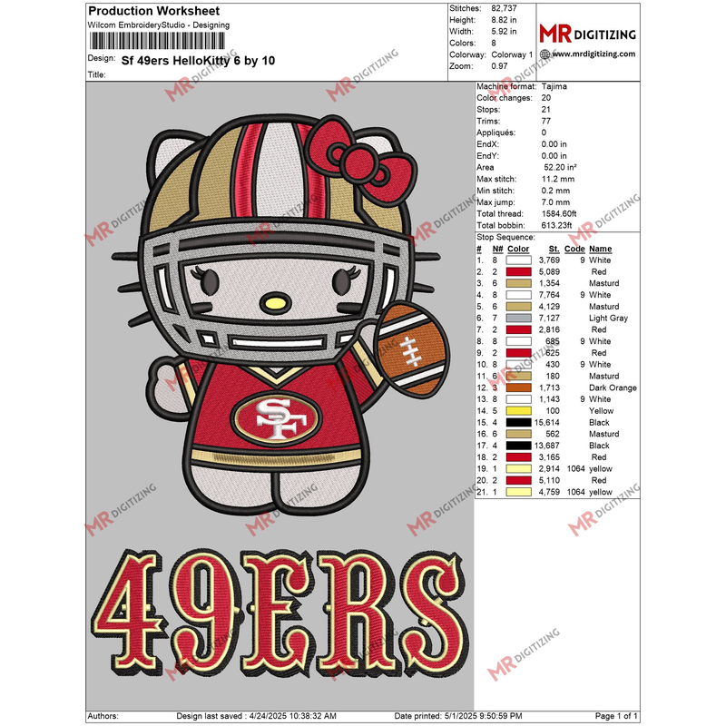 Thank you for choosing our Sf 49ers HelloKitty Embroidery design!